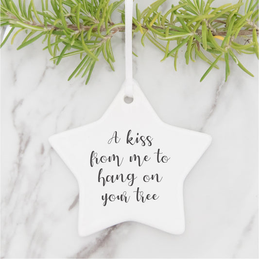 Ceramic Christmas Star Hanging Decoration – “A Kiss From Me to Hang on Your Tree”