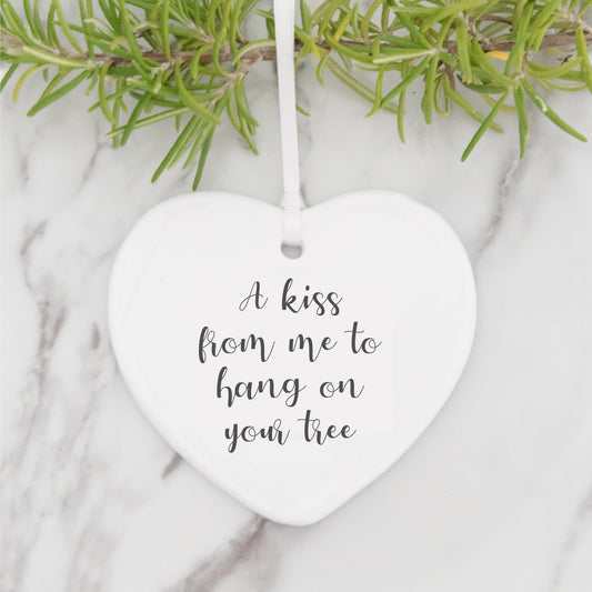 Ceramic Christmas Heart Hanging Decoration – “A Kiss From Me to Hang on Your Tree”