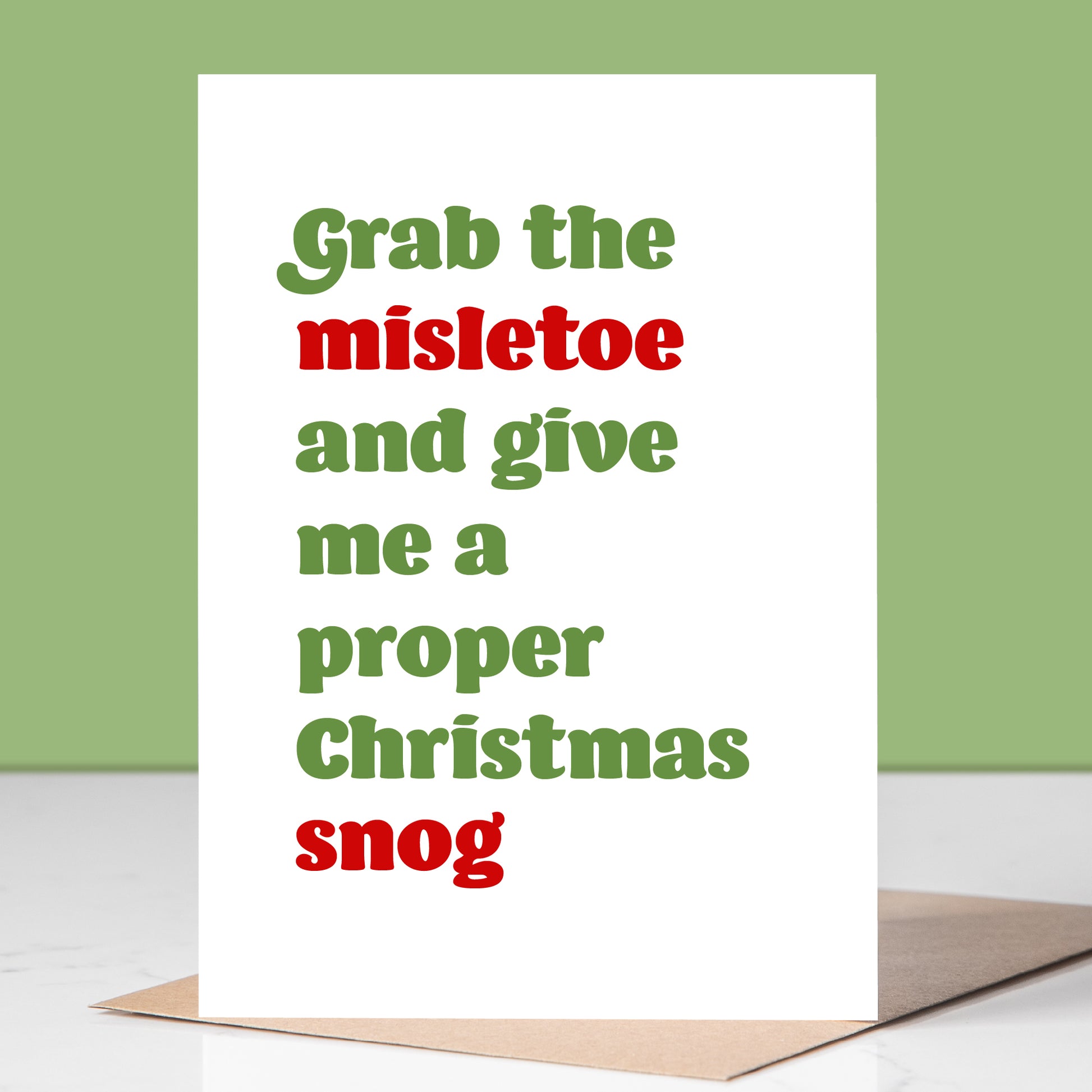 Our funny and romantic Mistletoe Snog Christmas card is the perfect way to send festive wishes to the one you love.