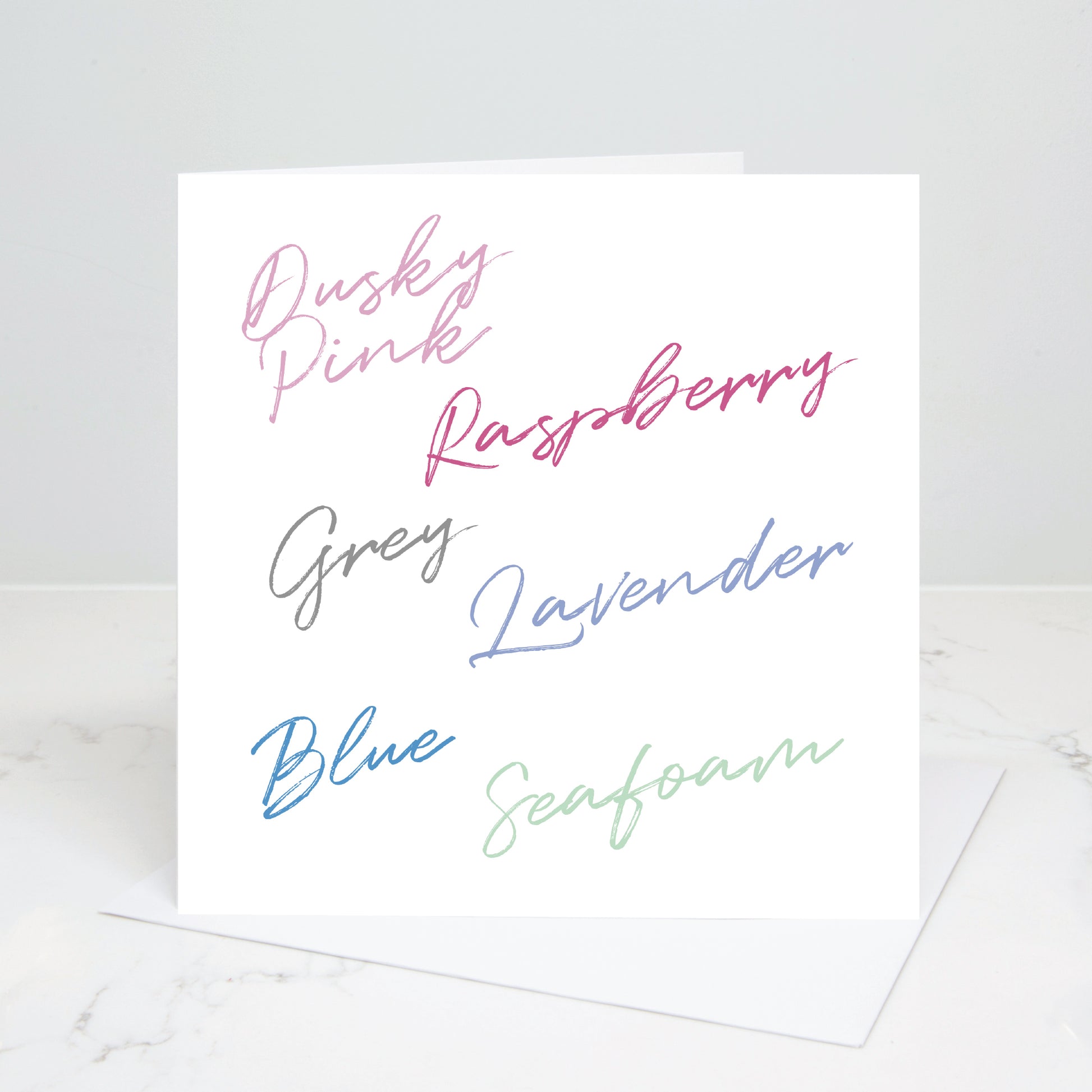 We use fully recyclable matt 300gsm card and supply our cards with a white 130gsm envelope. Our cards are plastic-free so come naked without a polybag.