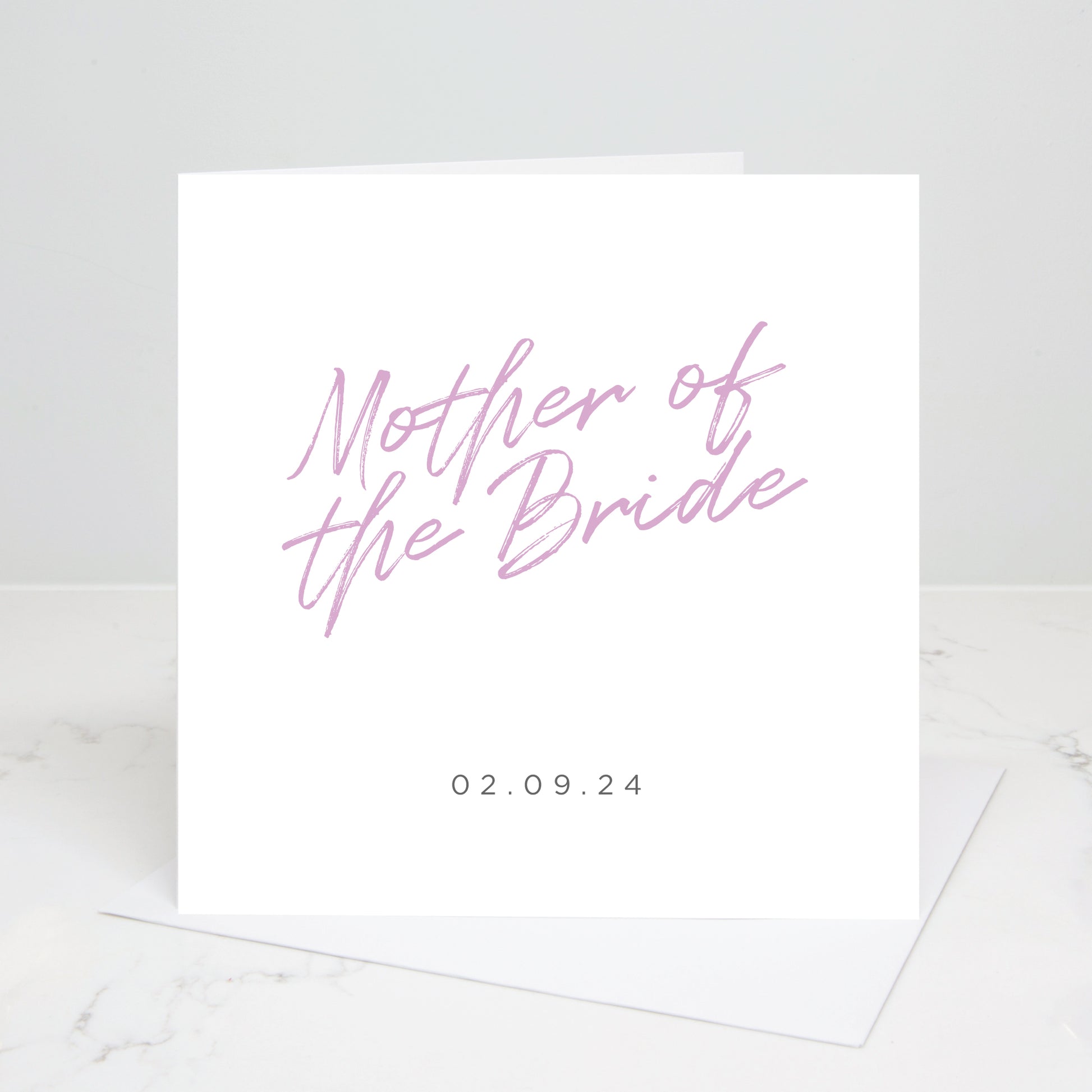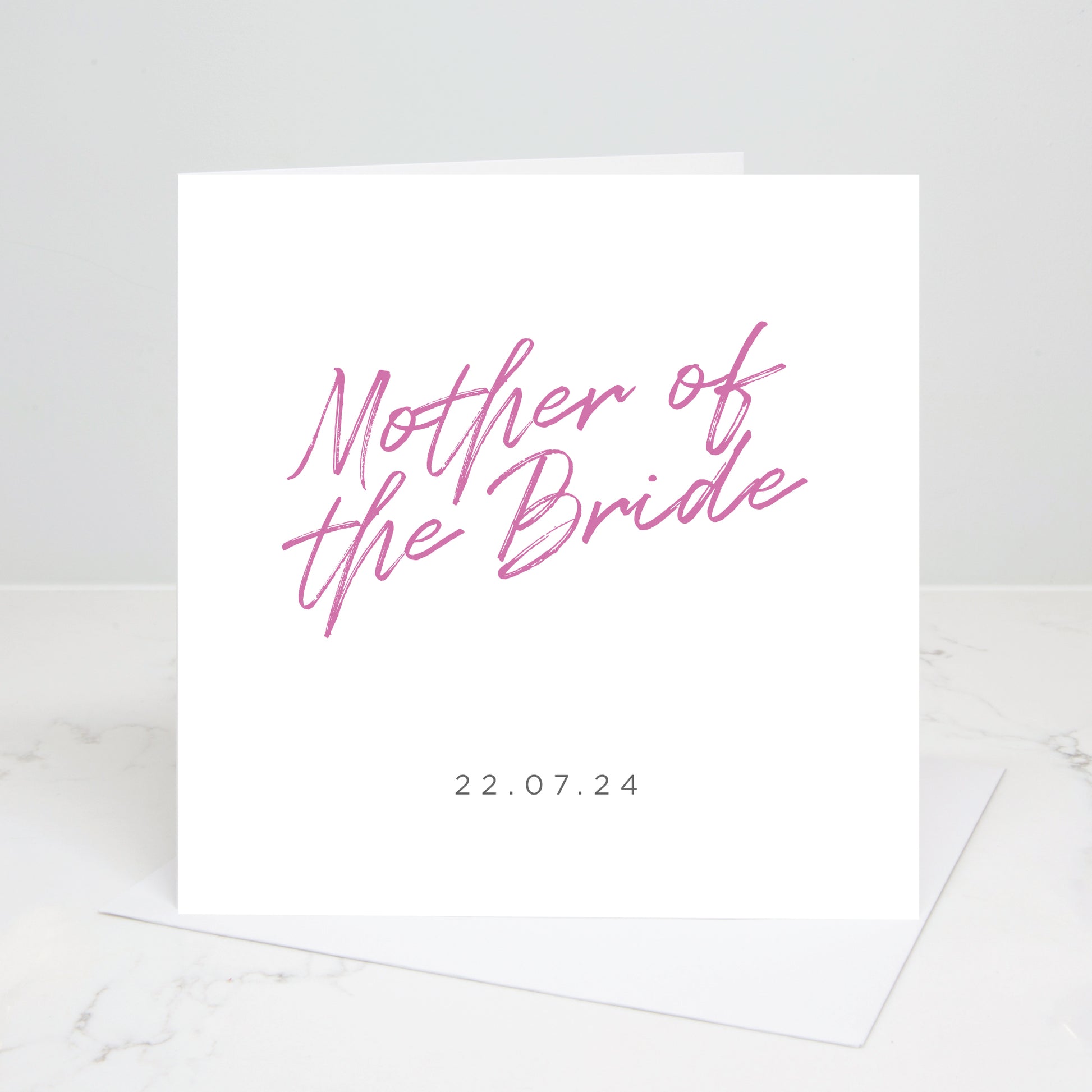 Designed and handmade by Slice of Pie Designs, this lovely card simply reads 'Mother of the Bride' in a modern script font with your wedding date underneath