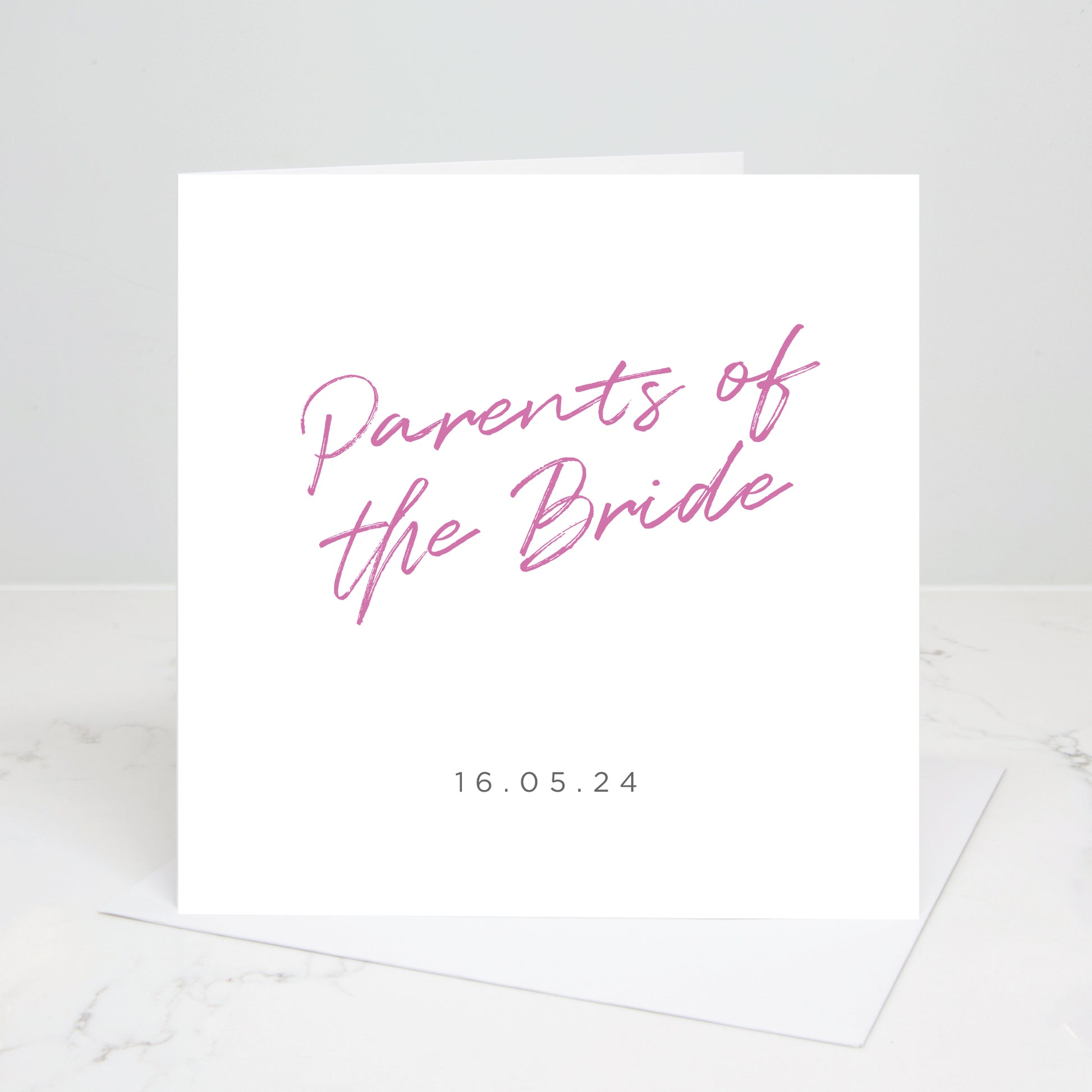 Our personalised 'Parents Of The Bride' wedding day card is the perfect way to send your love to your parents on your wedding day.