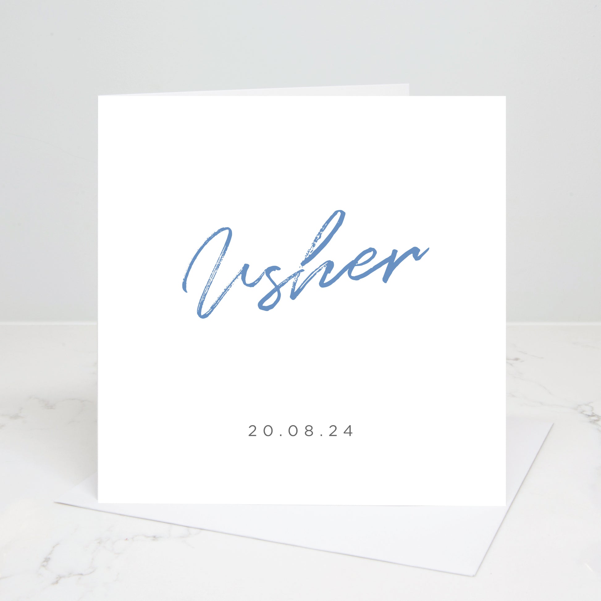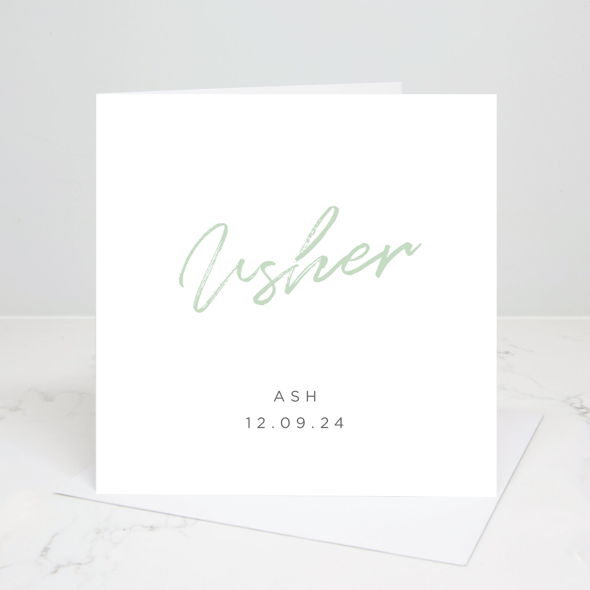 Designed and printed in our Cheshire studio, our Usher cards can be personalised in a choice of colours and can feature his name and the date of your wedding.